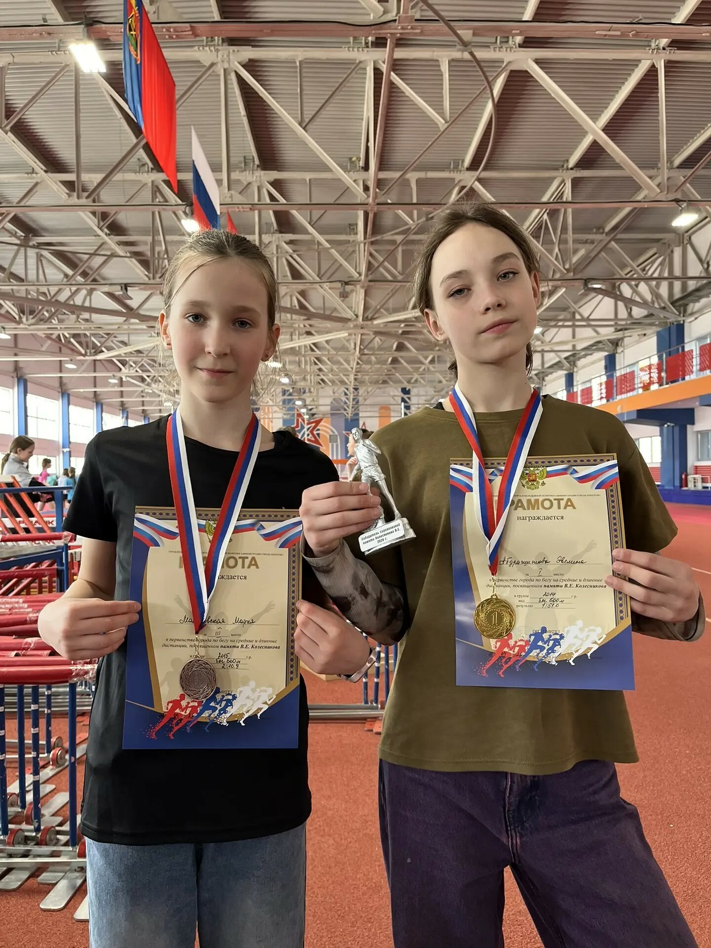 25 марта в городе Кемерово прошло первенство города по бегу на средние и длинные дистанции, посвященное памяти В.Е. Колесникова, в котором приняли участие обучающиеся отделения легкой атлетики под руководством тренеров-преподавателей А.В. Маркова и П.Н. Магариной. Ребята соревновались в беге на 600 метров в следующих возрастных группах: 2016, 2015, 2014, 2013, 2012, 2011 г.р. 2010 г.р. и старше соревновался в беге на 2000 метров. Соревнования собрали спортсменов из Кемерова, Анжеро-Судженска, Белова и Юрги. Наши спортсмены были в числе лучших! Среди девочек 2015 г.р. 3 место заняла Маньковская Мария Среди девочек 2014 г.р. 1 место заняла Абдрашитова Эвелина Поздравляем наших победителей и призеров, а остальные ребята обязательно достигнут успеха в будущих стартах!